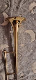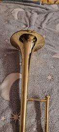 Trombone a pistoni in buono stato. Utilizzato per diversi anni, poi sostituito con un trombone a tiro.