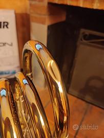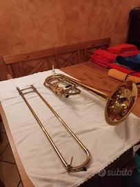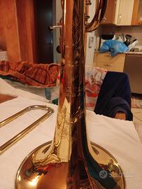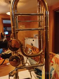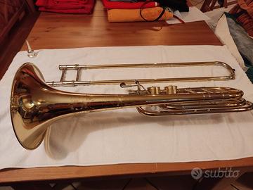 Vendesi trombone basso per cessata attività, S.E shires campana b11 1ym, coulisse 662, doppia ritorta U.S. Pat, strumento in buono stato, presenta 1 sola ammaccatura (come in foto).