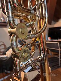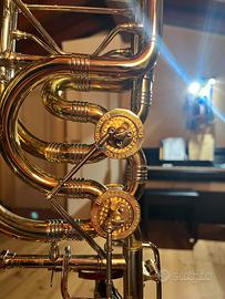 Vendo questo splendido trombone basso Greenhoe con campana red brass (GC5) compresa di custodia originale e 2 leadpipe. Lo strumento ha suonato poco e sempre in orchestra, presenta normali segni di utilizzo, qualche piccolo ding nella campana e suona benissimo! Lo strumento è ben bilanciato su tutto il registro, intonato, le ritorte e la Slide sono meccanicamente perfette a disposizione per qualsiasi informazione aggiuntiva.
