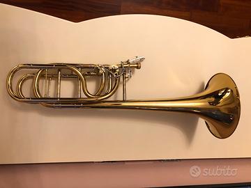 Trombone basso da studio, con doppia ritorta, marca “J.Michael” modello TB900, completo di custodia semirigida, senza imboccatura.
