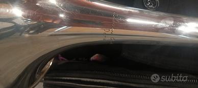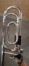 Vendo per passaggio ad altro strumento splendido trombone Courtois Prestige Symphonye 400, pochi esemplari prodotti con campana argentata (argento 800), canneggio largo e coulisse pesante con leadpipe. Strumento di fascia professionale dal peso molto contenuto ma con una proiezione e un colore di suono incredibili. La coulisse scorre perfettamente e la ritorta ha un passo cortissimo e agilissi mo. Qualche segno di usura dovuto all'età.