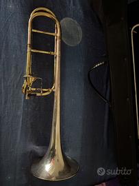 Vendo trombone tenore Edwards t350 coulisse nichel campana 321 cf argento fuori e oro 18 kt dentro, Ritorta di quelle chiuse cono pieno.