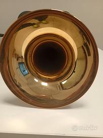 Vendo trombone tenore Yamaha YSL647, modello intermedioavanzato, MADE IN JAPAN, in (Bb) Serial number in foto Canneggio: large bore .547" (13,9 mm) Campana: 8½" (circa 215 mm) Materiale: ottone giallo Coulisse: nickel silver / cromata, molto fluida Finitura: laccatura originale Produzione: Giappone Strumento perfettamente funzionante Coulisse scorrevole, senza giochi Normali lievi segni di usura compatibili con l’età Nessun danno strutturale Nessun colpo Inclusa Custodia rigida originale Yamaha Bocchino Bach 3416HA 6-1/2A Qualsiasi prova, preferibile consegna a mano zona Roma e provincia