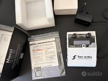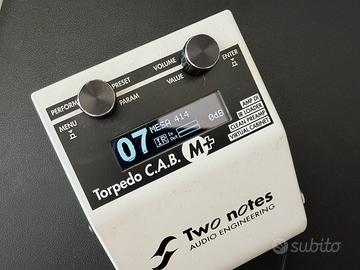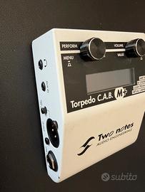 In perfettamente funzionante pari a nuovo. Con irs! TWO NOTES Torpedo C.a.b. M+ - Simulatore Preamp/finale, Cassa, Di E Ir Loader Amplificatori - Testata / Cassa per chitarra Two Notes Amplificatori - Testata / Cassa per chitarra TWO NOTES Torpedo C.a.b. M+ - Simulatore Preamp/finale, Cassa, Di E Ir Loader Torpedo CAB M + è una potente pedaliera che fornisce la base ideale per costruire suoni incredibili senza i tuoi amplificatori o cabinet. Offre un rig senza amplificatore da studio, caricato con 32 cabinet virtuali DynIR premium, ciascuno dotato di una scelta di 12 emulazioni di stanza e 8 microfoni. Basandosi sul successo dell'acclamato Torpedo CAB M, il CAB M + include uno straordinario preamplificatore pulito, amplificatori di potenza raffinati, amplificatore, accordatore, riverberi espansi e noise gate. Ingresso Amp / Inst / Line: Jack da 1/4 "bilanciato (TRS) Interruttore di livello in :+ 12dB: livello massimo: 4 dBu, impedenza: 1 MOhm Ingresso Aux: jack TRS da 1/8 "(3,5 mm) Uscita altoparlante: Jack bilanciato da 1/4 ″ (TS) Uscita DI: XLR bilanciato Livello massimo: 10 dBu Impedenza: 300 Ohm Uscita di linea: Jack bilanciato da 1/4 ″ (TRS) Livello massimo: 10 dBu Impedenza: 300 Ohm Uscita cuffie: Mini-jack da 1/8 "(TRS) Connettore USB: USB 2.0 Micro-B Scheda di memoria: Micro-SD da 256 MB inclusa Schede fino a 32 GB supportate