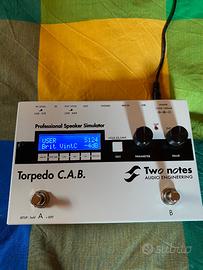 Two notes torpedo cab é la prima versione con presa midi IN , livello input selezionabile in line/ gtr , e livello ouput line/amp. Compreso di alimentatore e scatola.