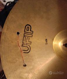 Piatto della UFIP serie Ritmo, anni 70/80, riparato da una crepa risulta ora solido e pronto all'uso! Non c'è paura la crepa continui poiché é stata fermata e il piatto suona come se fosse "integro".