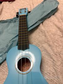 Ukulele azzurro, per bambini e adulti, corde originali in ottime condizioni. Usato poche volte. Custodia inclusa.