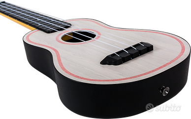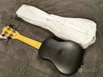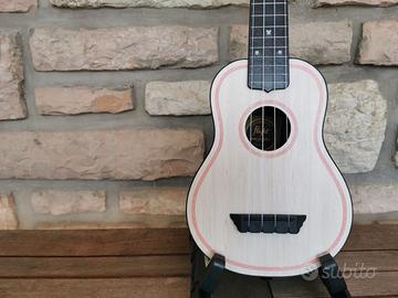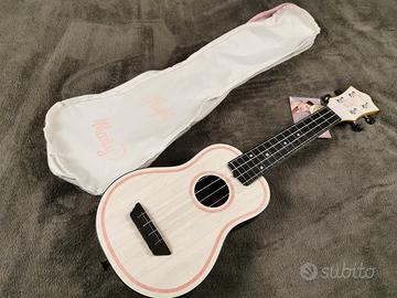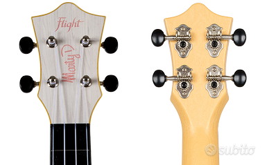 Ukulele soprano Flight Marty Dominguez. Nuovo, mai usato, in confezione originale. Top: legno di Tiglio. Parte posteriore e laterale: plastica ABS. Corde: Aquila Nylgut. Bottone per tracolla. Include custodia e guida per principianti