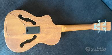 VENDO per inutilizzo raro Ukulele Harley Benton serie EleUke, modello "Silent" con corpo solid body. Questo modello è davvero raro! È lo strumento ideale per chi vuole suonare a qualunque ora senza disturbare i vicini, grazie alla tecnologia per l'ascolto in cuffia. Caratteristiche principali: Manico Lungo: Versione speciale con 21 tasti, molto più versatile dei modelli standard. Sistema Silent/MP3: Dispone di un preamplificatore interno con uscita per le cuffie e ingresso AUX (per collegare telefono/MP3 e suonare sopra le basi). Uscita Amplificatore: Uscita jack standard per collegarlo a casse o amplificatori da palco. Design Unico: Buche a "f" stile violino e paletta con logo esteso. Il kit include: Cuffie originali incluse nel set e cavetto per cavetto per MP3.