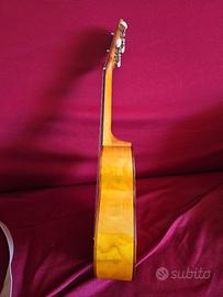 Ukulele soprano Mahimahi modelloWillow, piano armonico in cedro, fasce e fondo in salice, manico in noce. Molto squillante. Custodia nuova imbottita