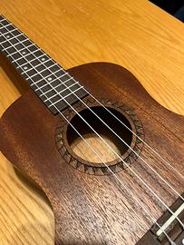 Vendo ukulele tenor (lunghezza totale circa 66,5 cm), ideale per chi cerca un suono più pieno e caldo rispetto a soprano e concerto. Strumento in legno naturale con finitura scura, elegante e sobria. Manico comodo, tastiera ben spaziata, perfetto sia per principianti sia per chi già suona. Suono equilibrato e buona proiezione. Condizioni: ✔ Ottime condizioni estetiche e funzionali ✔ Sempre tenuto con cura ✔ Pronto da suonare Caratteristiche principali: * Tipo: Ukulele Tenor * Lunghezza: ~66,5 cm * 4 corde * Meccaniche stabili * Timbro caldo e definito Vendo per inutilizzo.