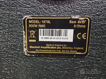 Vendo causa inutilizzo un pezzo che mi ha dato grandi soddisfazioni dal vivo, l'iconica cassa signature del mitico Lemmy Kilmister (Motörhead), sua maestà 1979 L 4x15!!! Praticamente introvabile! Per ottenere un sound aggressivo dalla potenza devastante è stata dotata di un amplificatore JCM 900 originale degli anni'90 e una cassa 1960 Lead 4x12!!! Che posso dire... venite a provare e trarrete le vostre conclusioni. Il prezzo è riferito a tutto lo stack.