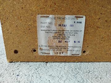 vendo unitá leslie speaker tremolo unit, completa di altoparlante made in USA. adatto per progetto di costruzione leslie, oppure per chitarra elettrica. i motori funzionano a 220v.