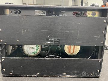 Amplificatore 50 W valvolare. 2 coni da 12'' Suono pulito e cristallino con un volume impressionante. Questo amplificatore quando si riscalda è spettacolare, Completamente originale tranne per un cono sostituito con un Jensen. Rieverbero e tremolo con pedale.