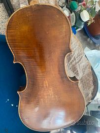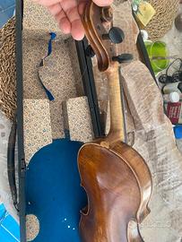 Violino 4/4 antico, risalente ai primi del XX secolo, completo di custodia rigida originale. Lo strumento presenta segni del tempo sulla vernice, coerenti con l’età, che non ne compromettono l’utilizzo. Fondo con bella marezzatura del legno. Tastiera, piroli e cordiera in buone condizioni. Monta corde già installate. Custodia originale inclusa, con segni evidenti di usura e un foro. Non è incluso l’archetto. Adatto a studenti o a chi cerca uno strumento d’epoca da studio. entrega a mano. Prezzo: 300 € trattabili.