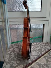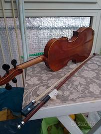 Violino 3/4 vintage lunghezza 56,5 cm con arco 3/4 di 70 cm. Si presume costruito in Germania alla fine del '900.E ' stato revisionato ed è pronto all'uso. Sarà spedito in una custodia vecchia adatta solo per la spedizione. Si puo' ascoltare chiedendo il video al 3396437363