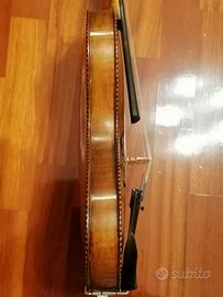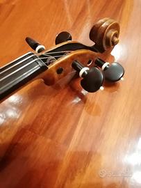Bellissimo violino fine 1800 inizio 1900 con le effe insolite e raffinate , filetto accuratamente intarsiato su entrambi i lati e fondo unico. Questo splendido violino mostra alcuni piccoli segni, nessuna crepa o fessura aperta. lo strumento è stato restaurato alcuni anni fa, monta corde nuove Pirastro, ma per esaltare al massimo la sonorità, sarà meglio sostituirle con una muta di qualità superiore. Ponticello, anima, cordiera, mentoniera, piroli e capotasto, tutto nuovo. Ha una nuova tastiera in ebano, sono strumenti costruiti in Germania primi 1900, ha l'incisione sulla nocetta "Guseto" e ne ho in totale 4 pezzi che posso cedere tutti assieme per non dividere la collezione fatta in 15 anni, uno di questi con l'incisione " Gusetto" probabilmente italiano, attendo una proposta adeguata alla qualità, CONTATTO WhatsApp: 3488927933