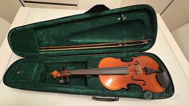 Violino 4/4 Modello Stradivarius (Cecoslovacchia) - Suono Superiore Descrizione: Vendesi violino 4/4 di ottima fattura, modello Antonius Stradivarius, realizzato nella storica area liuteristica della Cecoslovacchia. Lo strumento riporta l'etichetta “Antonius Stradivarius Cremonensis Faciebat Anno 1713” con la dicitura “Made in Czechoslovakia”, testimonianza della solida tradizione liuteristica dell'Europa dell'Est del secolo scorso. Caratteristiche principali: • Resa sonora: Lo strumento è stato testato e vanta una voce ricca, calda e potente. Per le sue doti timbriche, è ideale non solo per principianti, ma anche per studenti di livello avanzato che cercano uno strumento da studio performante. • Stato: Strumento integro, senza crepe o danni strutturali. • Dettagli: Montatura completa con mentoniera, piroli regolati e cordiera con tiracantino per la corda Mi. Un violino solido e affidabile, perfetto per chi cerca un salto di qualità nel suono rispetto alle produzioni industriali moderne. Prezzo: € 390 trattabili. Violino con la vecchia custodia (per la spedizione sicura) e l'archetto non nuovo. Disponibile per qualsiasi prova.