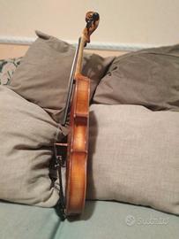 Violino 4/4 senza etichetta acquistato dalla Germania e revisionato .La cassa è integra, senza riparazioni e in buone condizioni. E' databile nella seconda metà del '900 ed è corredata da un arco originale da incrinare , da uno moderno leggermente usurato e da una custodia moderna. Si può ascoltare tramite whatsapp al 3396437363