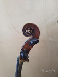 Vendesi affascinante violino ottocentesco in stile Maggini, uno strumento di carattere ideale per studenti avanzati, amatori o collezionisti alla ricerca di una voce antica a un prezzo accessibile. Lo strumento si distingue per le sue proporzioni generose e la tipica estetica ispirata alla scuola bresciana. Caratteristiche tecniche (misure in mm): Lunghezza cassa: 358 mm Diapason: 198 mm Manico: 130 mm Stato dello strumento: Il violino possiede una buona sonorità, ricca e matura come ci si aspetta da un legno stagionato di oltre un secolo. Nota importante: Lo strumento viene offerto al prezzo competitivo di 750 € poiché la montatura (ponticello, piroli, cordiera) è da rivedere/aggiornare per portarlo al massimo del suo potenziale esecutivo. La struttura del legno è sana e non presenta crepe aperte evidenti. Perché sceglierlo: È l'occasione perfetta per chi desidera uno strumento dell'800 senza spendere cifre proibitive, avendo la possibilità di personalizzare l'assetto (set-up) secondo le proprie preferenze timbriche. Consegna: Prediligo lo scambio a mano per permettere all'acquirente di visionare lo strumento dal vivo. Zona: Disponibile per consegna a mano in zona Venezia Mestre.