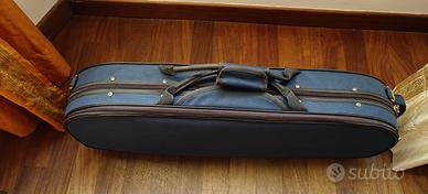 Custodia leggera sagomata in schiuma plastica espansa; rivestimento in nylon telato, tasca esterna, interno in velour, portaoggetti, 2 supporti archetti, tracolla rimuovibile, fodera copri strumento.