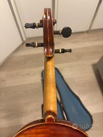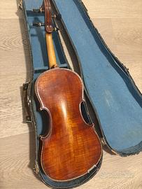 Vendesi affascinante violino vintage misura 4/4, modello ispirato ai celebri Stradivari di Cremona (come da etichetta interna). Lo strumento presenta una bellissima vernice ambrata con i segni del tempo che ne sottolineano il carattere e la storia.