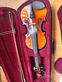 Violino per principianti MAVIS 1413 provvisto di custodia , trespolo e set di corde (escluso il SOL usato) in perfette condizioni, usato da mia filgia una stagione per un corso. Valore nuovo totale 150 euro circa. solo scambio a mano.