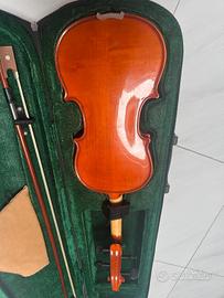 Violino piccolo per bambino misura 1/4, completo di custodia. Usato pochissimo. Mancano le corde. Comprende cuscino sotto mento fatto a mano. Vendo a 50€ trattabili.