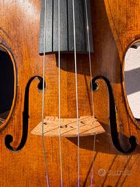 Vendo violino di liuteria straniera misura 4/4. Ottimo per i principianti, ha un suono profondo e scuro, monta corde Thomastik Peter Infeld cambiate da poco. La mentoniera non sarà quella in foto ma il modello Dresden sempre in bosso. Presenta qualche segno di usura ma suona perfettamente.