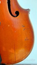 Lo strumento presente delle piccole fratture (restaurate) sulla tavola armonica e sul fondo, che non incidono sul suono.