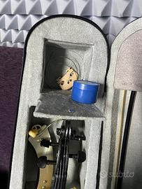 L'Aliyes ALDSZA-1311 è un violino elettrico in legno con parti in carbon fibre, formato 4/4, comprensivo di custodia, archetto, colofonia, spalliera, corde di ricambio e secondo ponticello.