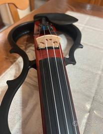 Violino elettrico marca Leonardo. Perfettamente funzionante con bel suono. Possibile utilizzarlo con pile ministilo e cuffie per suonarlo in casa oppure collegarlo ad un mixer. Uscita jack stereo 3,5mm. Controllo Volume.
