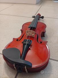 violino FOM 1/2 completo di mentoniera,spalliera, archetto, pece e custodia per il trasporto. praticamente nuovo usato poche volte,si vende per passaggio a misura 4/4. manca una corda. misure: 47x16.