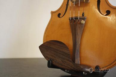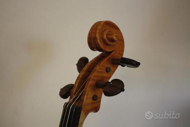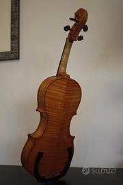 Violino 4/4 modello Carletti realizzato nel 2016 con propria etichetta di autenticità al suo interno in perfette condizioni. Tavola armonica realizzata con abete rosso di risonanza mentre il fondo, fasce e riccio realizzate in acero marezzato di alta qualità. Monta bellissime montature in palissandro rifinite in nero, con elegante tiracantino ottonato.