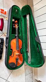 Violino da principiante marrone, completo di archetto ed accessori e custodia in tessuto. Si presenta in perfetto stato e nessun segno di