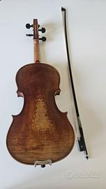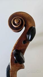 "Modele artistique à l'ancienne". Realizzato con legno di qualità e una vernice anticata che conferisce allo strumento l'affascinante patina del tempo. Il prezzo di vendita include arco e custodia rettangolare in velluto elegante, dotata di porta spalliera e due porta arco.