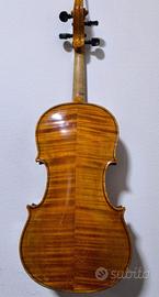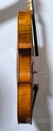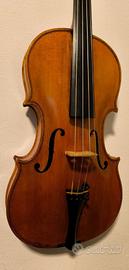 In vendita splendido violino di liuteria realizzato interamente a mano nel 1946 da S.A. Ronnell (liuteria svedese). Montato con corde Dominant nuove. E' un violino che ha suonato molto ed è stato apprezzato in molti concerti per il suo suono brillate. Custodia rigida inclusa. Arco Dorfler&Sohne in vendita a parte. Caratteristiche Costruttive: Tavola: Abete rosso. Fondo: Due pezzi in Acero marezzato di rara bellezza. Vernice di colore arancio-dorato. Montatura: Piroli, cordiera e mentoniera in Ebano di alta qualità. Resa Sonora: Lo strumento possiede una voce potente e matura, con una proiezione eccellente adatta sia all'uso solistico che orchestrale. Il timbro è brillante e cristallino sui cantini, con una risposta immediata all'arco. Condizioni: Lo strumento è in condizioni ottime. È stato recentemente controllato e montato con corde Thomastik Dominant. Prova e Consegna: Lo strumento è disponibile per qualsiasi prova acustica presso Bergamo. Preferibile la consegna a mano per garantire l'integrità del violino. Prezzo: € 5900. Prezzo con Arco: € 6700