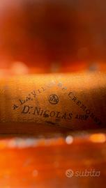 Violino 4/4 - antica liuteria francese, costruito da Nicolas Didier l’Ainè, prima metà dell’800, con aggiunta del bottone “Titanium” forato per amplificare il suono. Strumento adatto al repertorio solistico e cameristico dal suono caldo, rotondo!