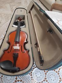È un violino 4/4 in legno usato pochissimo da circa due mesi. Lo vendo in quanto la mia famiglia me ne ha regalato un'altro a livello professionale. Le corde di questo violino sono state cambiate il 25/10/2025 in quanto quelle di prima erano scadenti e i loro suono non mi piaceva, le ho dovuto cambiare in meglio pagandole € 48 difatti nella custodia spedirò anche quelle di prima.