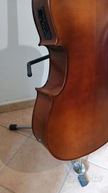 Violoncello in condizioni eccellenti. 5 corde: la, re sol, do, fa. Dotato di pick-up interno a contatto con il ponticello. Ingresso a jack. Mixerino con batteria da 9 volt.