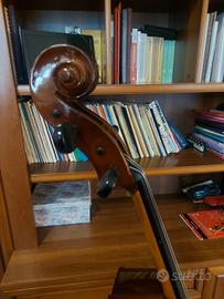 Include custodia e archetto nuovo in pernambuco. Alla base del manico è presente una riparazione che non inficia sulla qualità del suono.