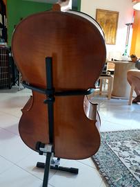 Violoncello Luthier mod. orchestra,acero canadese marezzato tastiera in ebano e titanio con 4 intonatori custodia ed arco inclusi +portavioloncello