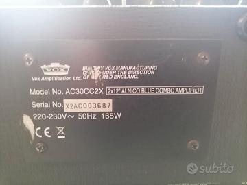 Vendo amplificatore combo valvolare per chitarra Vox AC30 CC2X con due coni da 12" Alnico Blue.