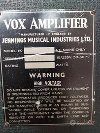 Tutto originale, compreso il pedalino. Sono solo stati aggiunti 4 piedini con ruote piroettanti, per maggiore comodità di spostamento, ma ho i 4 piedini originali se si vuole rimontarli al posto delle ruote. E' inutilizzato da 10 anni circa. Ha i 2 famosi altoparlanti azzurri VOX JMI (jennings musical industries). Modello utilizzato dai Beatles.