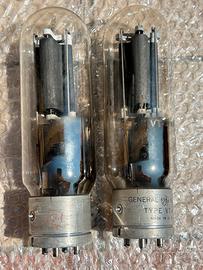 2 valvole vintage originali d’epoca, defli anni 1940, prodotte negli Stati Uniti (made in USA) da General Electric (GE) , placca nera , ricambi originali vintage di alta qualità