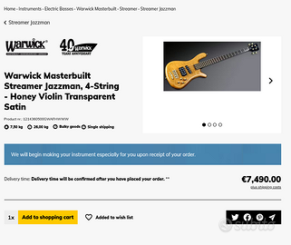 WARWICK Streamer LX Jazzman Custom Shop GERMANY - Basso NUOVO rimanenza di negozio.