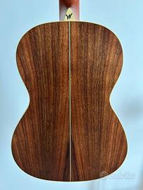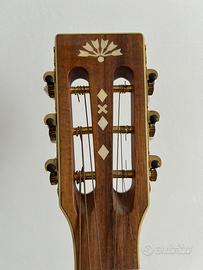 Tutta in legno koa set up completo effetuato da liutaio (action & regolazione del manico) amplificata tramite piezo passivo monta corde Ernie Ball Earthwood phosphor bronze 12/54 sostituito piroli in plastica con piroli in osso & abalone Scheda tecnica : Shape - Parlor Top Wood - Koa Back Wood - Koa Sides - Koa Bracing - Quarter Sawn Scalloped-X Rosette - Washburn Parlor Neck Wood - Satin Mahogany with 2 way Truss Rod Fretboard - Walnut Number Of Frets - 18 frets Inlays - 1889, Style 306 Nut - Bone Nut Width - 1-3/4 Scale - 24-3/4 Hardware - Gold hardware Bridge - Walnut Tuners - Gold open gear Color - Natural Finish - Satin Finish
