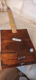 Wine box Guitar concepita " tosta" per la sua presenza, per la sua generosa cassa vintage, per il manico un po' tozzo ma molto maneggevole, per il suo pickup single coil alnico V vintage senza compromessi. Robustissima. Suono delta blues ottima se usata con lo slide. Vendo euro 60