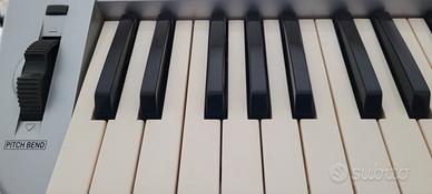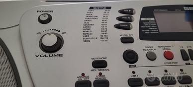 WK1000 è una tastiera 61 tasti con dinamica, con arrangiamenti automatici, facile da utilizzare e capace di adattarsi a diverse situazioni: dallo studio della musica al puro divertimento del karaoke. Polifonia 32 note; 471 suoni PCM, inclusi 20 drum kits; 22 riverberi + 22 effetti, Modo operativo 3 sezioni real-time (lower, upper1, upper2); 96 styles x 4 variazioni; Sequencer 7 song style, recorder 8 tracce; Disk Drive Load, save, delete, format (720 Kb - 1.44MB), ecc. Completa di alimentatore, floppy di sistema operativo, manuale operativo italiano, leggio, cavo video RGB/Scart per visualizzare il testo su TV.