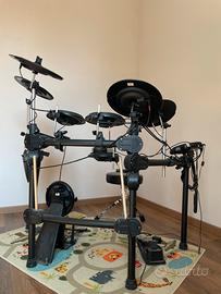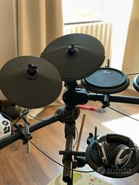 Usato pochissimo , con sgabello Set E-Drum con drum rack, 4x 8" pad stereo, 2x 12" pad piatti stereo, 1x 10" pad hi-hat, 1x 8" pad kick, 1x pedale, 1x controller hi-hat Modulo drum con retroilluminazione blu, polifonia max: 64, 41 drumkit (26 preset, 15 personalizzati), 458 suoni batteria (drums, percussion, SFX), effetti: ambience, equalizzatore a 3 bande 20 brani utente, metronomo (30 - 300 bpm), metodo di registrazione: in tempo reale 1 ingresso multipin, 2 ingressi pad jack 6,3 mm aggiuntivi, 1 uscita cuffie jack 3,5 mm, 1 uscita main stereo jack 6,3 mm, MIDI In/Out, connessione USB Ingresso AUX IN jack 3,5 mm, alimentazione: alimentatore 9V, incluso manuale, chiave accordatura e 1 paio di bacchette, colore: nero,